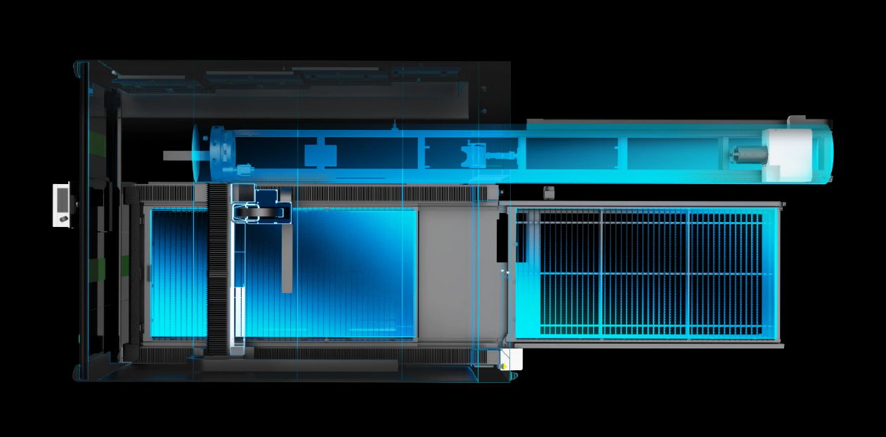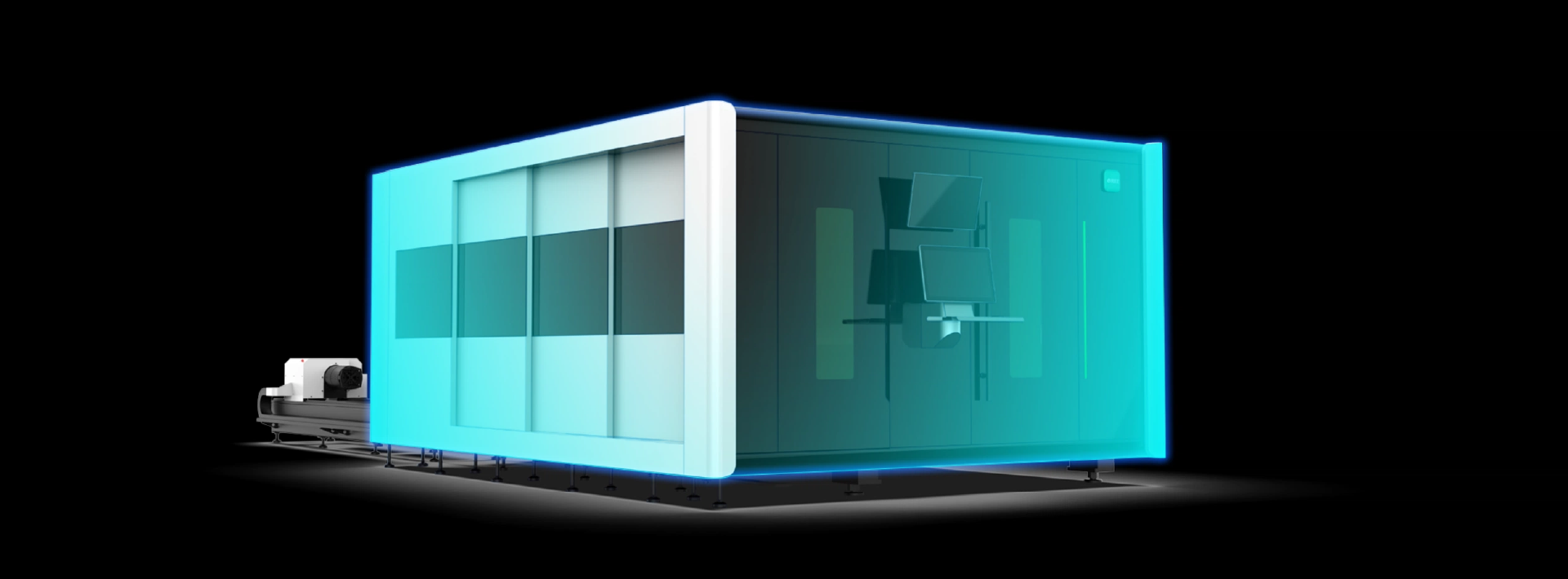 تعزل حجرة القطع المُغلَّفة الأبخرة والتعرض لأشعة الليزر، مما يُعزِّز السلامة والنظافة.