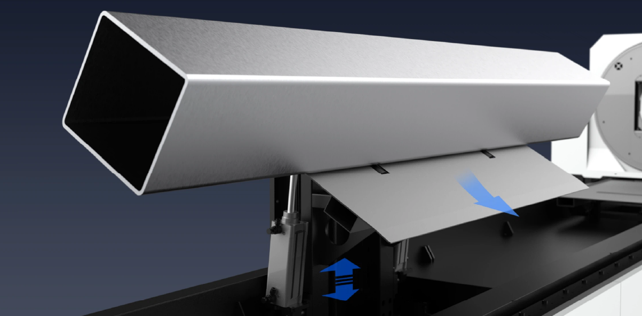 يضبط ارتفاع دعامة الأنبوب تلقائيًا لمنع الانحراف أو الاهتزاز أثناء الدوران، مما يضمن دقة القطع واستقراره طوال العملية.